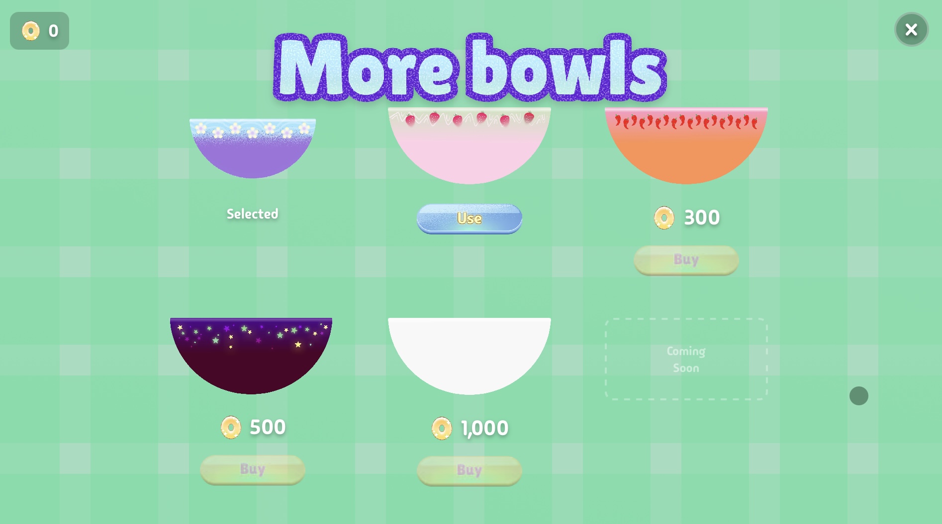 - Unlockable bowls to collect with coins 🥣🌟